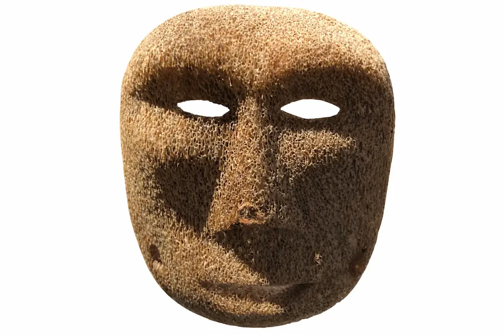 Il faut gravir les 6 étages du Musée L, pour découvrir ce masque en os de baleine, associé aux peuples Inupiaq, les Inuits de la région de Point Hope en Alaska. Objet spirituel, d’une part, dont la fonction est de rendre visibles les esprits et de permettre son interaction avec les humains. D’autre part, objet rituel dicté en rêve aux chamanes et permettant l’incarnation temporaire de l’esprit lors de cérémonie chamanique.