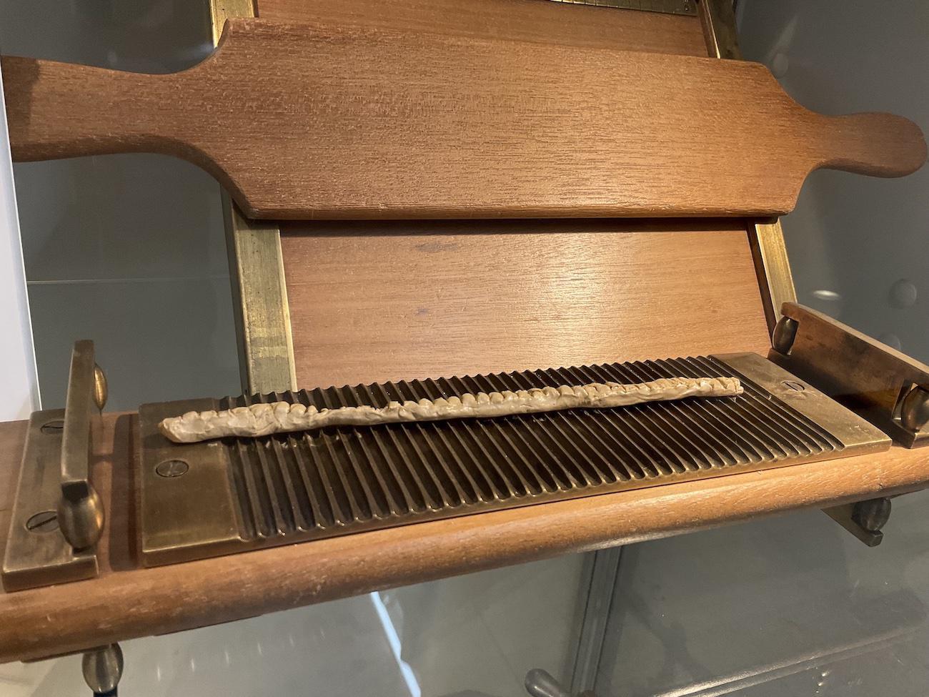 Pour préparer des pilules, on formait une pâte homogène constituée du ou des médicaments et d’excipients, des substances sans action thérapeutique propre (comme la poudre de réglisse ou le sirop). On obtenait ensuite le magdaléon, un cylindre de masse pilulaire, qui était découpé à l’aide d’un couteau dont les cannelures correspondaient à celles de la tablette du pilulier. La dernière étape consistait à rouler les fragments à l’aide d’un disque en buis pour leur donner une forme sphérique.
