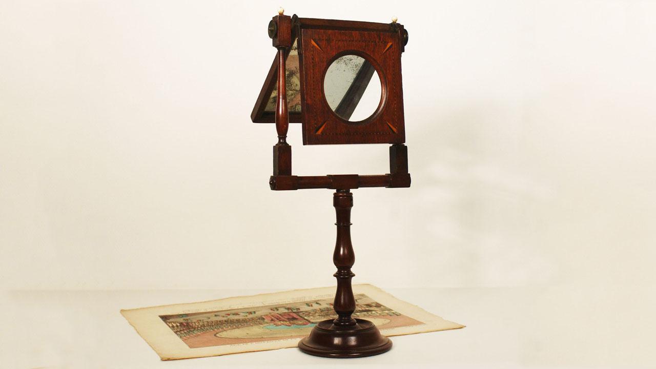 Au 18e siècle, regarder une image à travers un zograscope équivalait à aller voir un film au cinéma. Le zograscope est un instrument d’optique sur pied. Il est comporte une lentille grossissante montée dans un cadre rectangulaire et un miroir inclinable. Ce miroir renvoie le reflet de l’image posée au pied du zograscope. Il s’agit le plus souvent des paysages urbains.